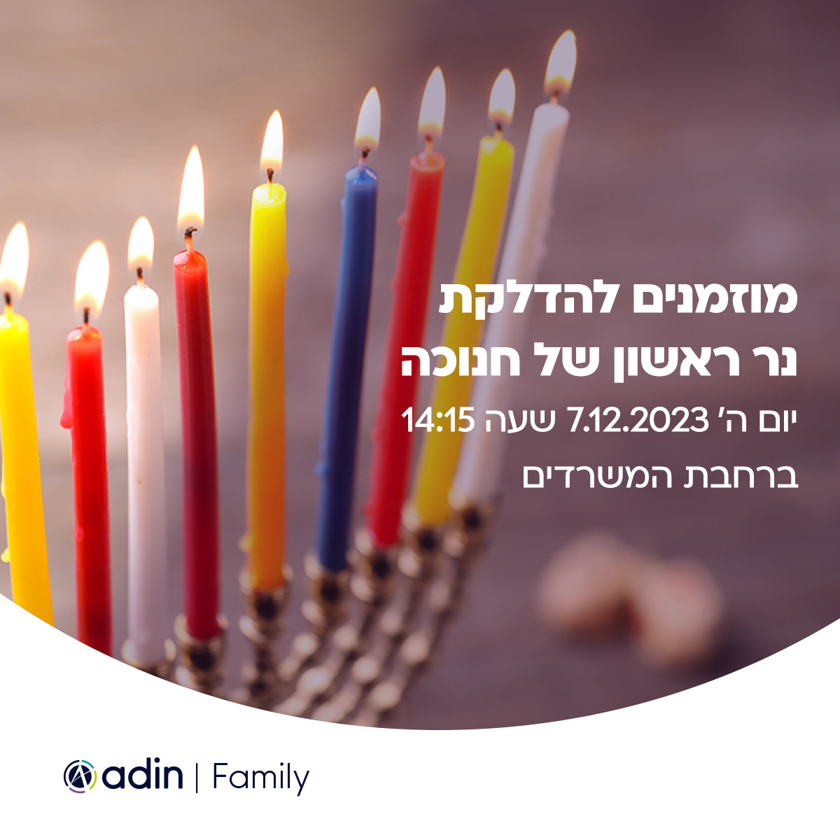 הזמנה להדלקת נר ראשון של חנוכה